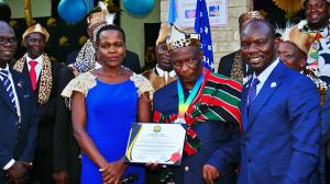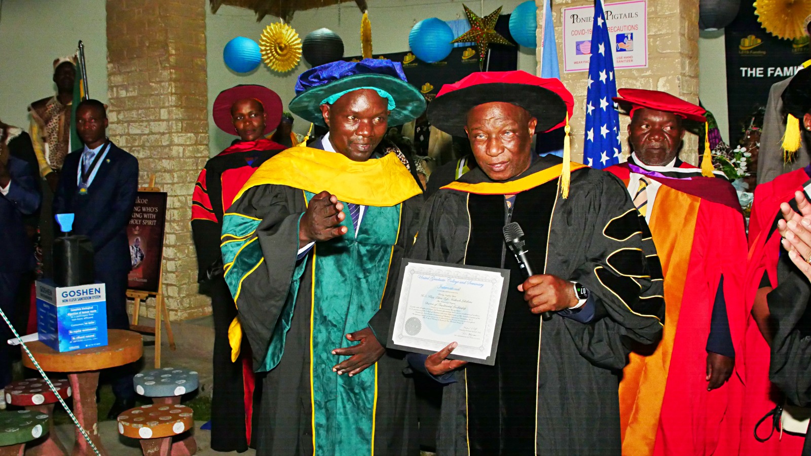 His Royal Highness King Tikoe Tefo Meshack Lekitlane receives Honorary Doctorate in Traditional Leadership from United Graduate College and Seminary International - photo provided by Godfrey Atsing'a